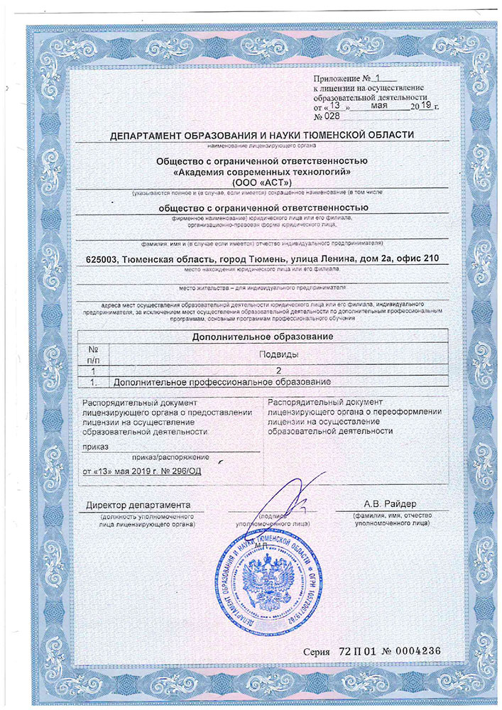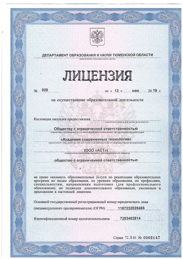 • Лицензия ООО «Академия Современных Технологий» (стр. 1)