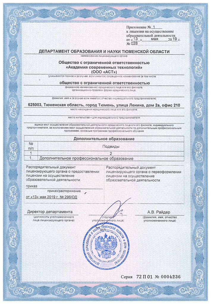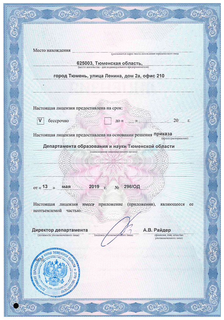 | Место нахождения образовательной организации: | 625003, Тюменская область, город Тюмень, ул. М. Горького, д. 76, офис 326 |